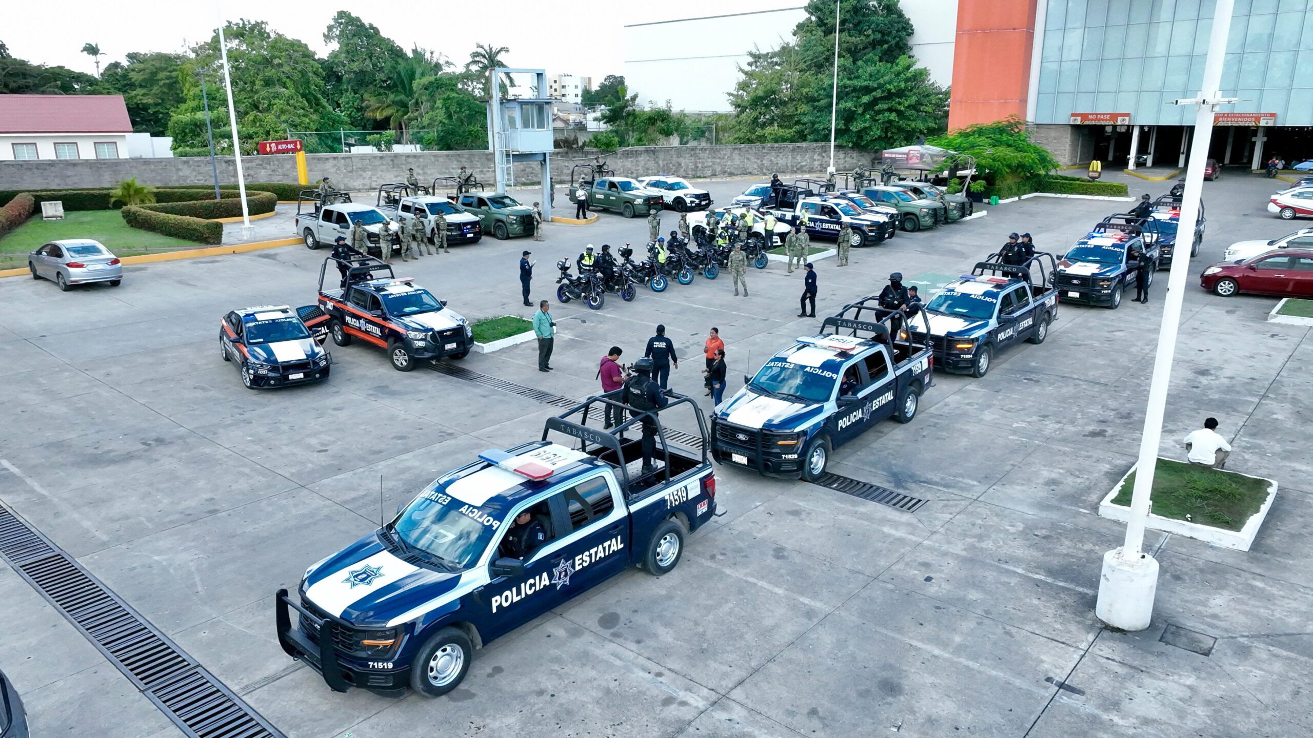 La Secretaría de Seguridad y Protección Ciudadana (SSPC) en coordinación con la Fuerza Interinstitucional de Reacción Táctica (FIRT) Olmeca, mantienen recorridos constantes de vigilancia en las principales avenidas, centros comerciales, zonas bancarias y áreas de mayor afluencia de la ciudad de Villahermosa.